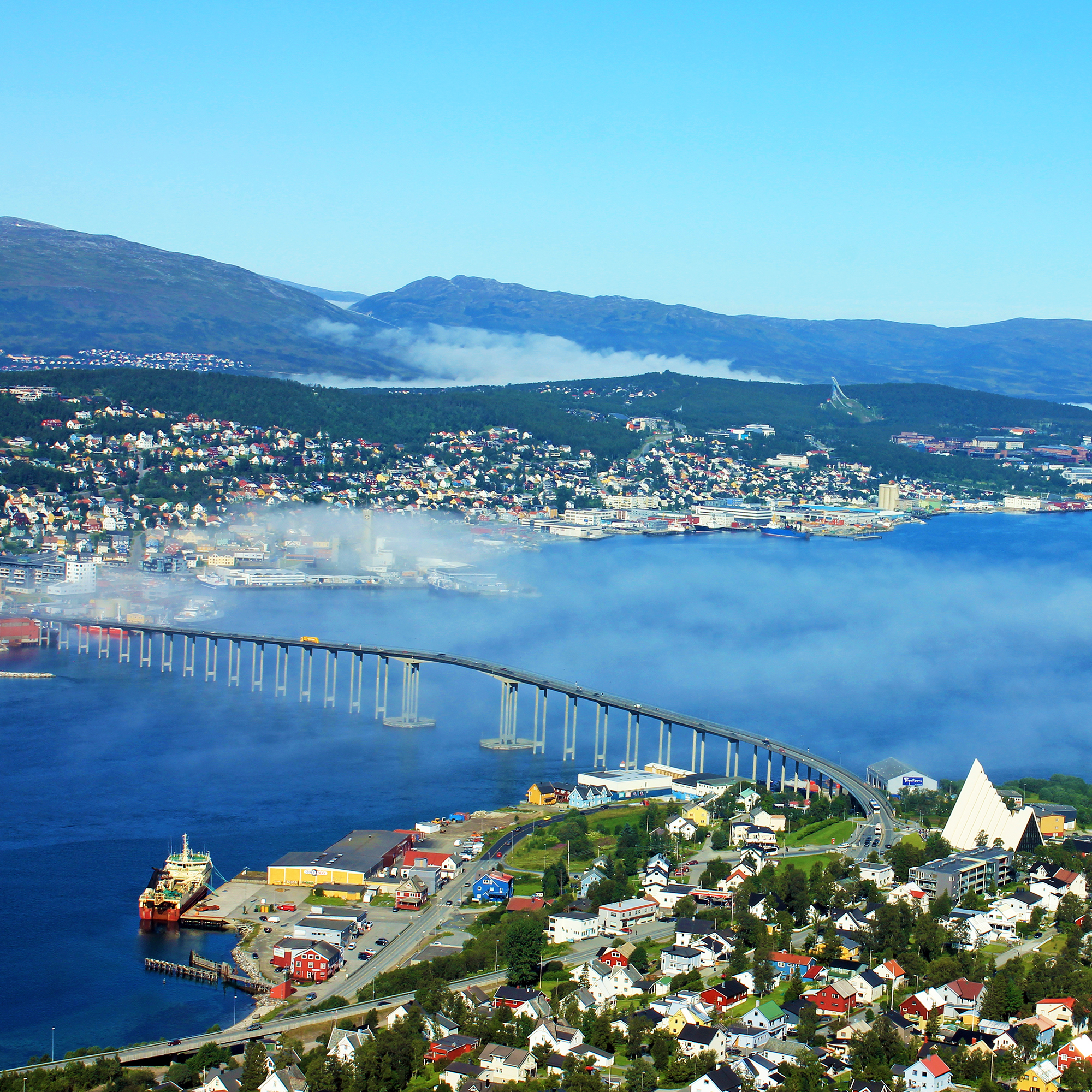 Today we re-join our leger coach and follow the shores of the Lyngenfjord and cross the Karfjord and Ullsfjorden to Tromso, the capital of northern Norway and gateway to the Arctic. At a latitude of 70 degrees it is the same as Alaska and Siberia. After a short visit we travel south across the area of Troms, passing Fossbakken to reach the lovely town of Narvik and our hotel for tonight. The town is beautifully located on a peninsula between the Beisfjord and the Rombakfjord at the foot of the spectacular Fagernes Mountain.