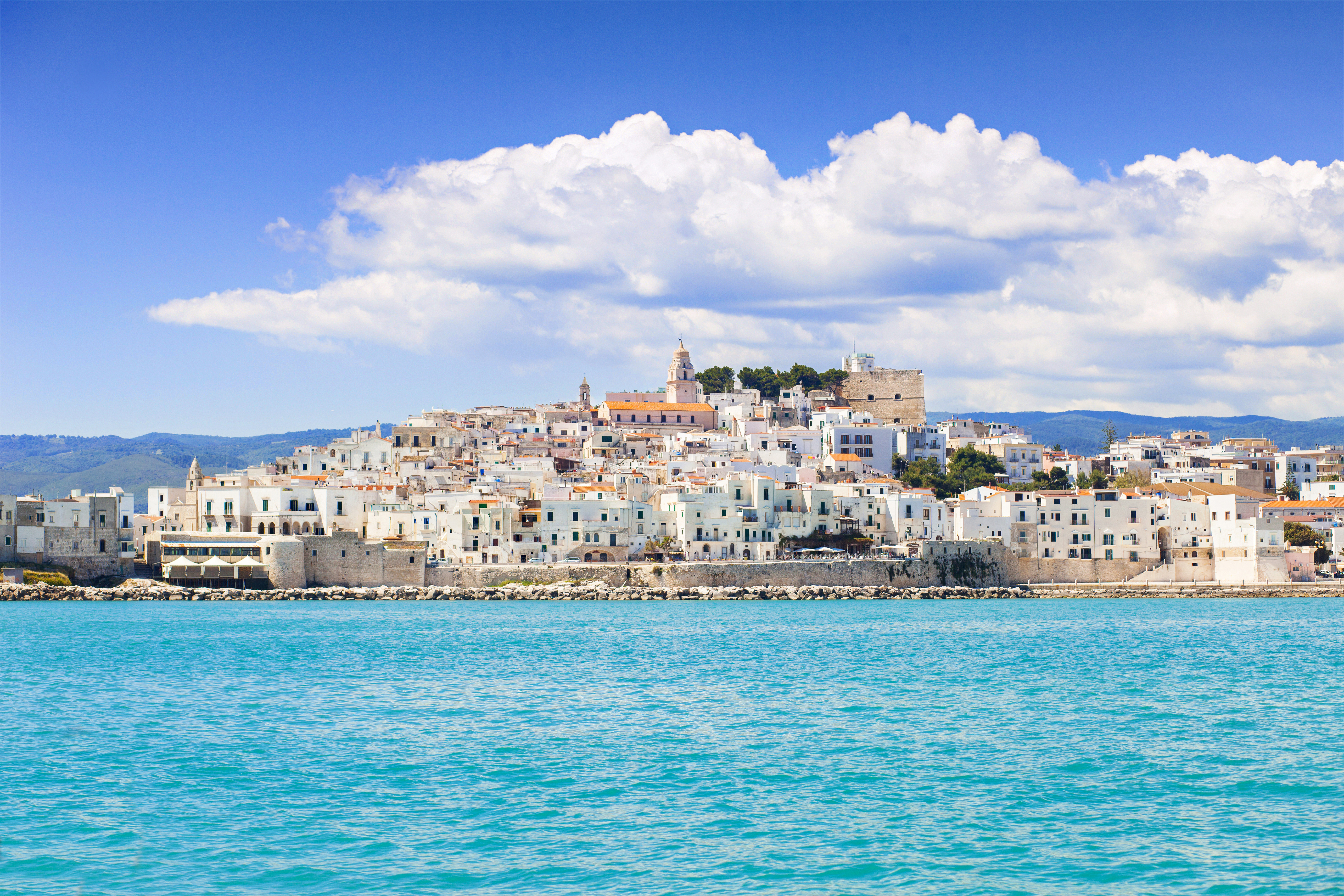 Today, join our included scenic coastal tour. Enjoy our visit to the small town of Peschici, perched on top of an impressive cliff overlooking the bay and filled with whitewashed houses which cling to the rocky headland. The old town of Peschici climbs from the harbour to the fortifications of the Swabian Castles. Here, there will be time for you to explore the narrow alleys and hidden squares.